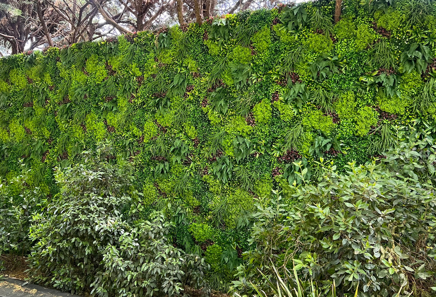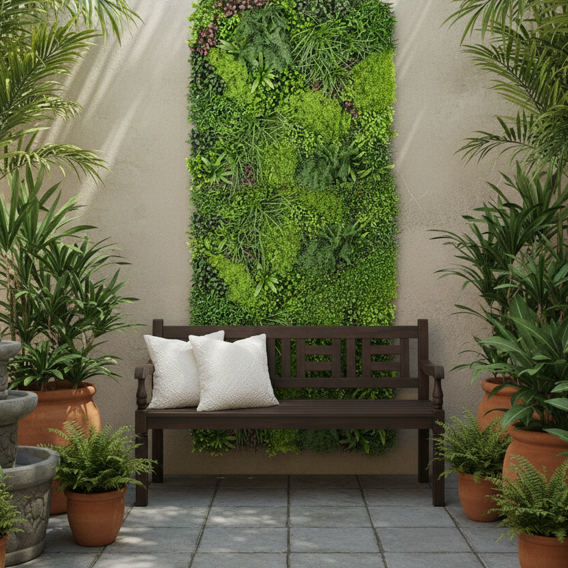 With multiple leaf shapes, varied tones and serious density, this panel creates depth and movement that reads like a real planted wall.